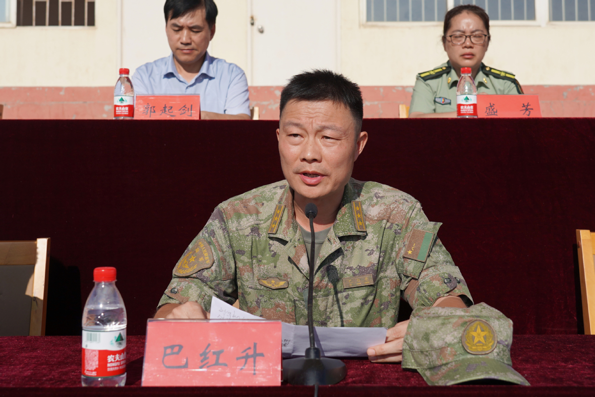 巴红升代表承训部队致辞,他简要介绍了该部队传承和践行的“两不怕”精神,要求全体教官务必做到认真、科学施训,全体学生务必做到端正思想、遵守纪律、吃苦耐劳、认真训练,不留遗憾。