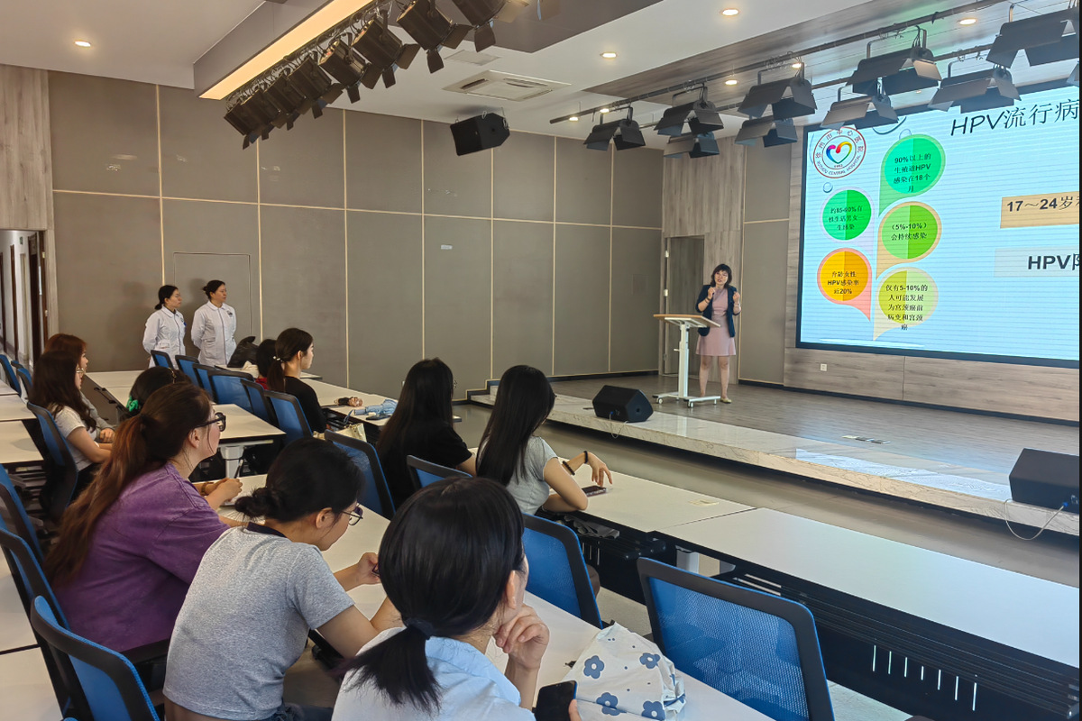 徐州市中心医院妇科主任孙芳以《远离HPV 远离宫颈癌》为题,结合真实案例,为在场学生讲解了女性生理结构及HPV 流行病学、致癌特点、治疗和自我防护知识,并与学生们进行细心交流,解疑答惑。