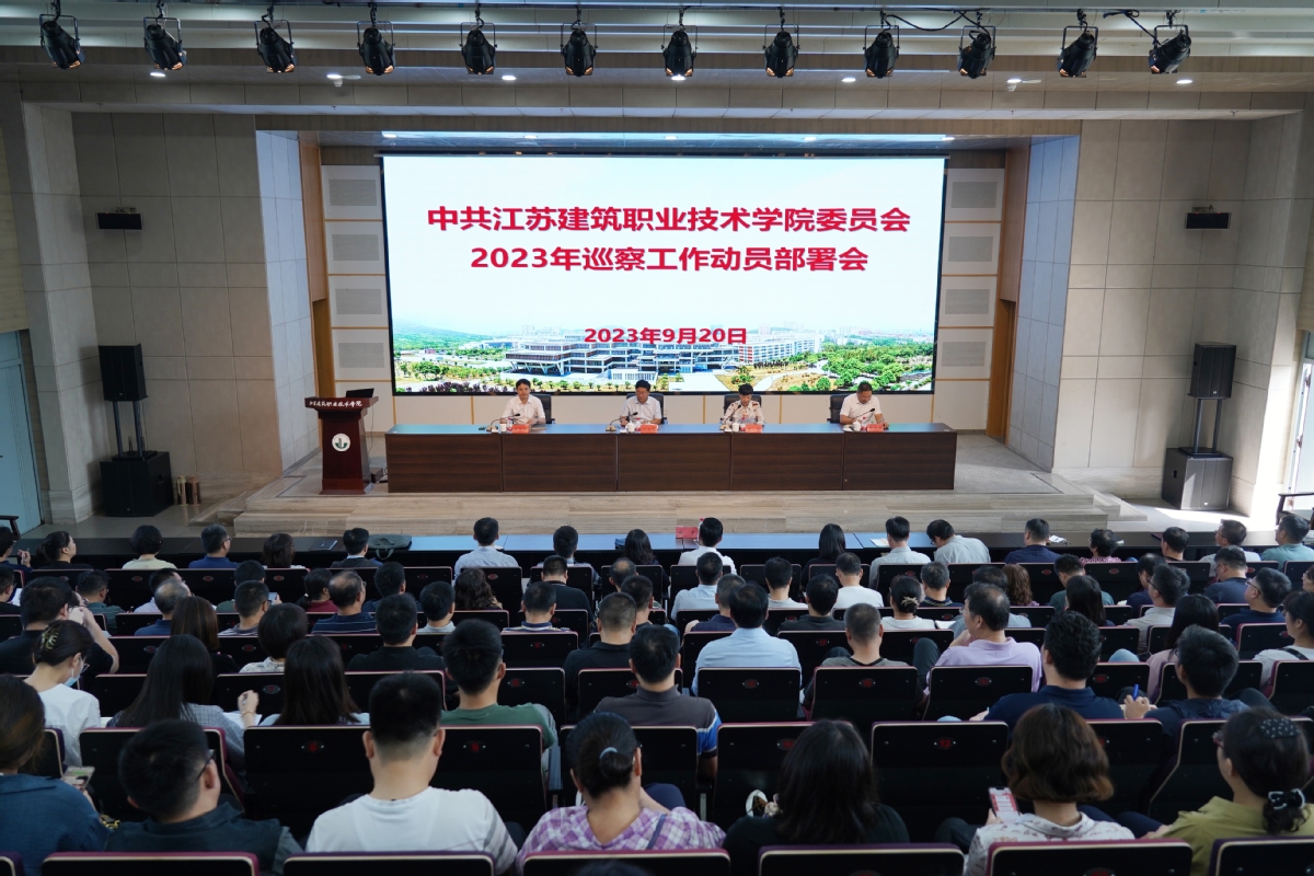 9月20日上午,学校2023年党委巡察工作动员部署会在图书馆报告厅召开。党委副书记、校长沈士德,党委副书记梁惠,党委委员、纪委书记朱作付,党委委员、副校长蒋兆峰出席会议,副校级领导徐勇参加会议,学校党委巡察工作领导小组成员、全体副科级以上干部和巡察组成员参加会议。梁惠主持会议。