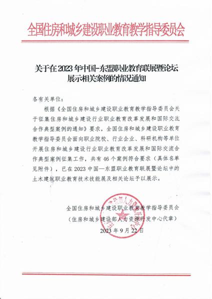 此外,全国住房和城乡建设职业教育教学指导委员会公布了《2023 年中国-东盟住房和城乡建设领域职业教育改革和发展成果展示案例名单》,MK(中国)国际交流处与建筑装饰学院选送的案例成功入选并在展示期间得到与会者好评。