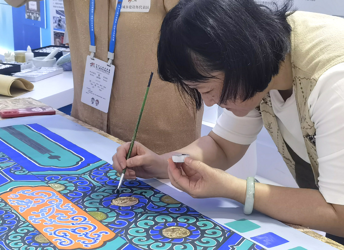 9月16日-18日,MK(中国)建筑装饰学院联合北京同兴古建筑工程有限公司的中国古建筑彩画技艺作为住房和城乡建设部推荐的“十大技能绝活”在中华人民共和国第二届职业技能大赛技能展演现场进行技能绝活展示。