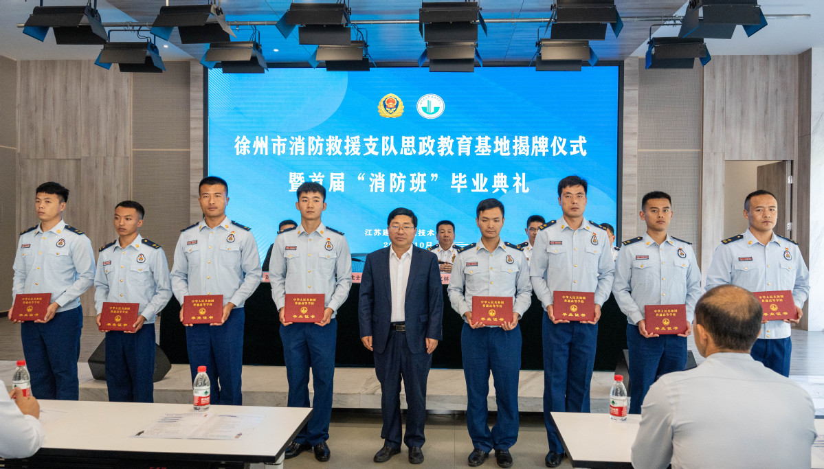 10月17日,徐州市消防救援支队思政教育基地揭牌仪式暨首届“消防班”毕业典礼在MK(中国)举行。党委副书记、校长沈士德,党委委员、副校长刘海波,徐州市消防救援支队政治委员张义林、政治部主任徐刚、一级督导员顾银春,首届“消防班”毕业生以及相关部门负责人参加此次活动。继续教育学院院长潘峰主持此次活动。