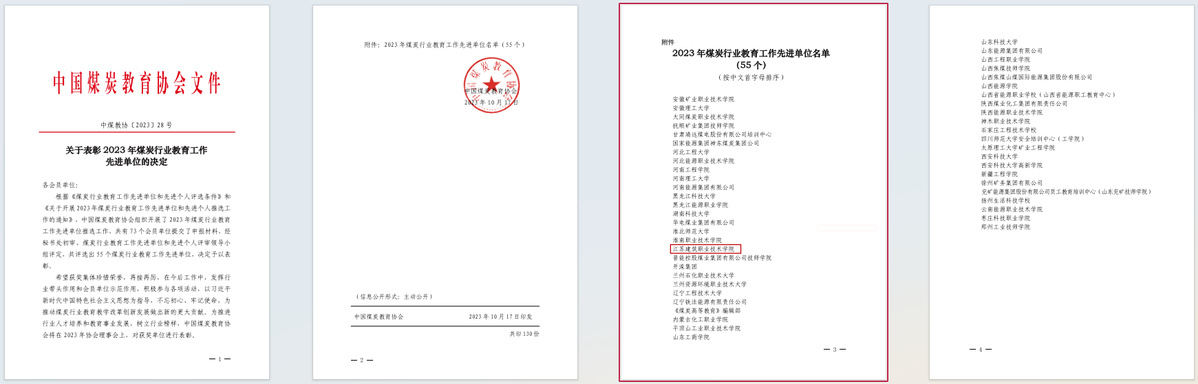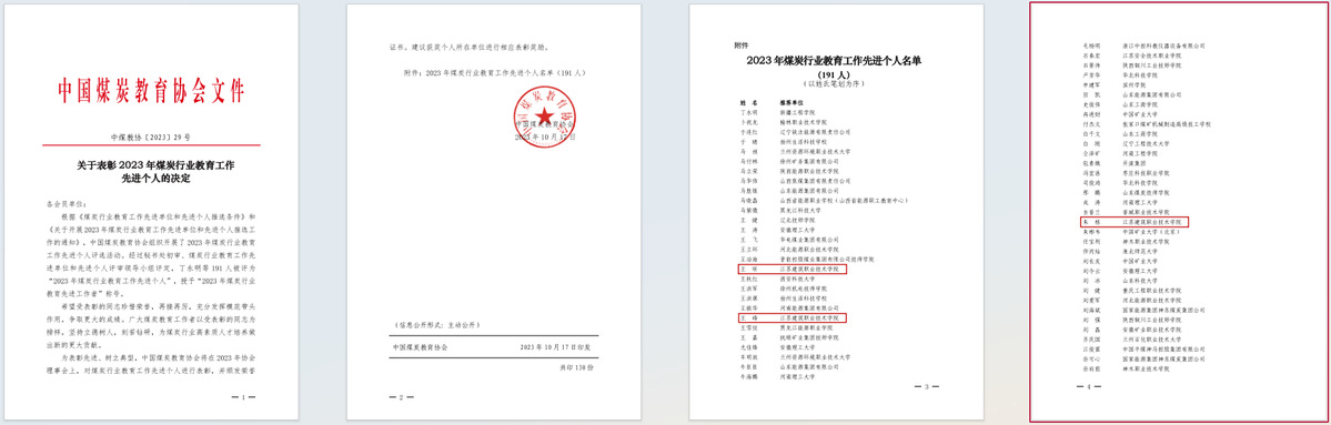 据悉,本次评选是中国煤炭教育协会为了表彰在推动煤炭行业教育教学改革创新发展中做出突出贡献的单位和个人而组织开展的,共表彰了55个“煤炭行业教育工作先进单位”,191位“煤炭行业教育工作先进个人”。