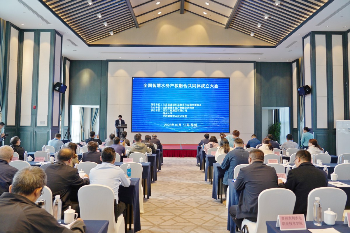 会上,沈士德代表学校致辞。他简要介绍了学校的办学情况,重点解读了学校下一阶段的发展与改革思路,充分肯定了智慧水务产教融合共同体交流合作平台建立的重要性。他强调,建筑工业化转型、数字智能化升级与绿色低碳化发展是水利水务行业发展的必然趋势,我们要以时不我待的紧迫感、使命感,加快专业的数字化改造,持续推进职普融通、产教融合、科教融汇、协同创新,创建水务系统智能建造、绿色环保、数字孪生、低碳运维“四位一体”智慧水务全产业链及职业教育发展的新模式和新样板。