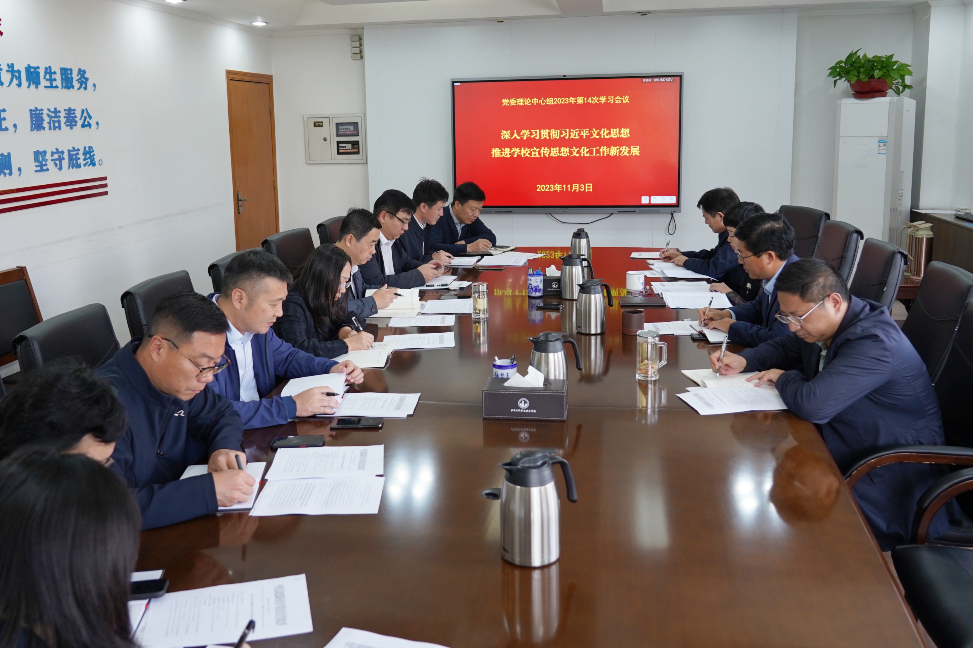 11月3日上午,学校党委理论学习中心组在行政楼第一会议室召开2023年第14次党委理论中心组学习会议,主题为“深入学习贯彻习近平文化思想,推进学校宣传思想文化工作新发展”。校长、党委副书记沈士德主持会议,校党委理论学习中心组成员参加学习。