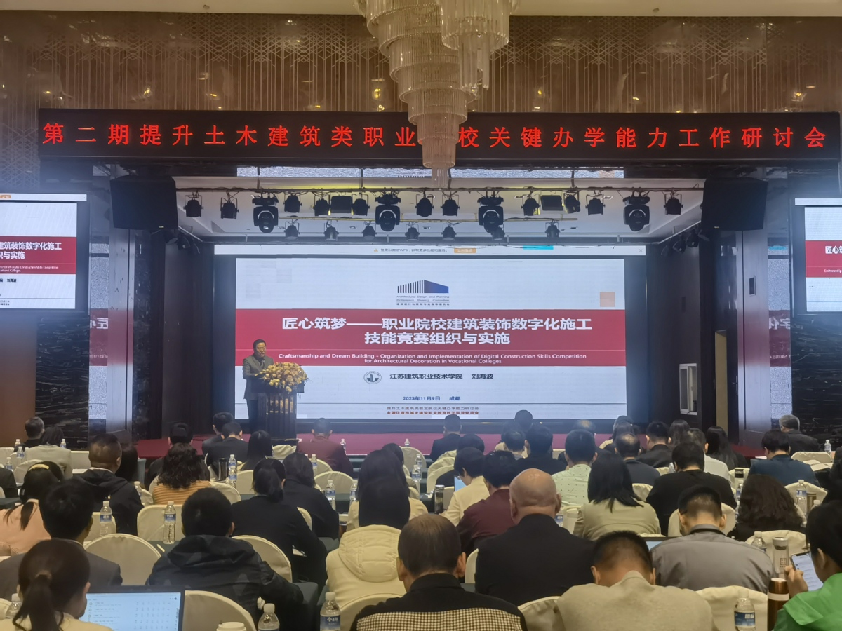 11月8日-11日,由全国住房和城乡建设职业教育教学指导委员会主办,四川建筑职业技术学院、廊坊市中科建筑产业化创新研究中心与建知(北京)数字传媒有限公司承办的第二期提升土木建筑类职业院校关键办学能力工作研讨会在成都举行。本次研讨会邀请了全国开设土木建筑大类专业的职业院校领导、专业负责人及骨干教师,围绕“提升土木建筑类职业院校关键办学能力”这一主题进行专题研讨。住房和城乡建设部人力资源开发中心副主任、全国住房和城乡建设职业教育教学指导委员会副主任委员兼秘书长程鸿,四川省住房城乡建设厅一级巡视员刘恒出席开幕式,住房和城乡建设部人力资源开发中心职业培训部副处长、全国住房和城乡建设职业教育教学指导委员会副秘书长温欣主持开幕式。