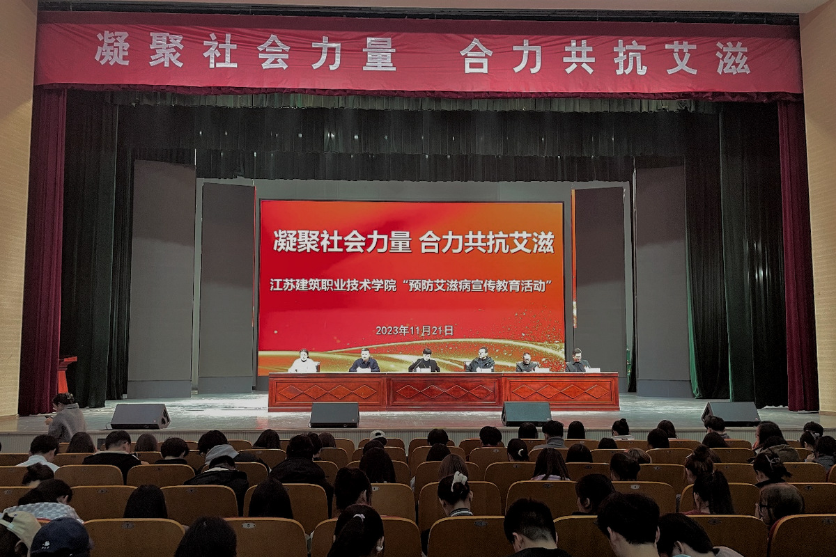 在第36个“世界艾滋病日”来临之际,为了全面普及艾滋病防治知识,营造全社会参与艾滋病预防工作的良好氛围,增强大学生对艾滋病预防工作的认知和自我保护能力,11月21日下午,学校在会堂举行2023年预防艾滋病宣传教育系列活动启动仪式。校党委副书记梁惠、徐州市疾控中心性病艾滋病科科长孙传武、泉山区疾控中心副主任张峰,1000余名大一新生及相关部门负责人参加了启动仪式。后勤中心校医院朱琳主持此次活动。
