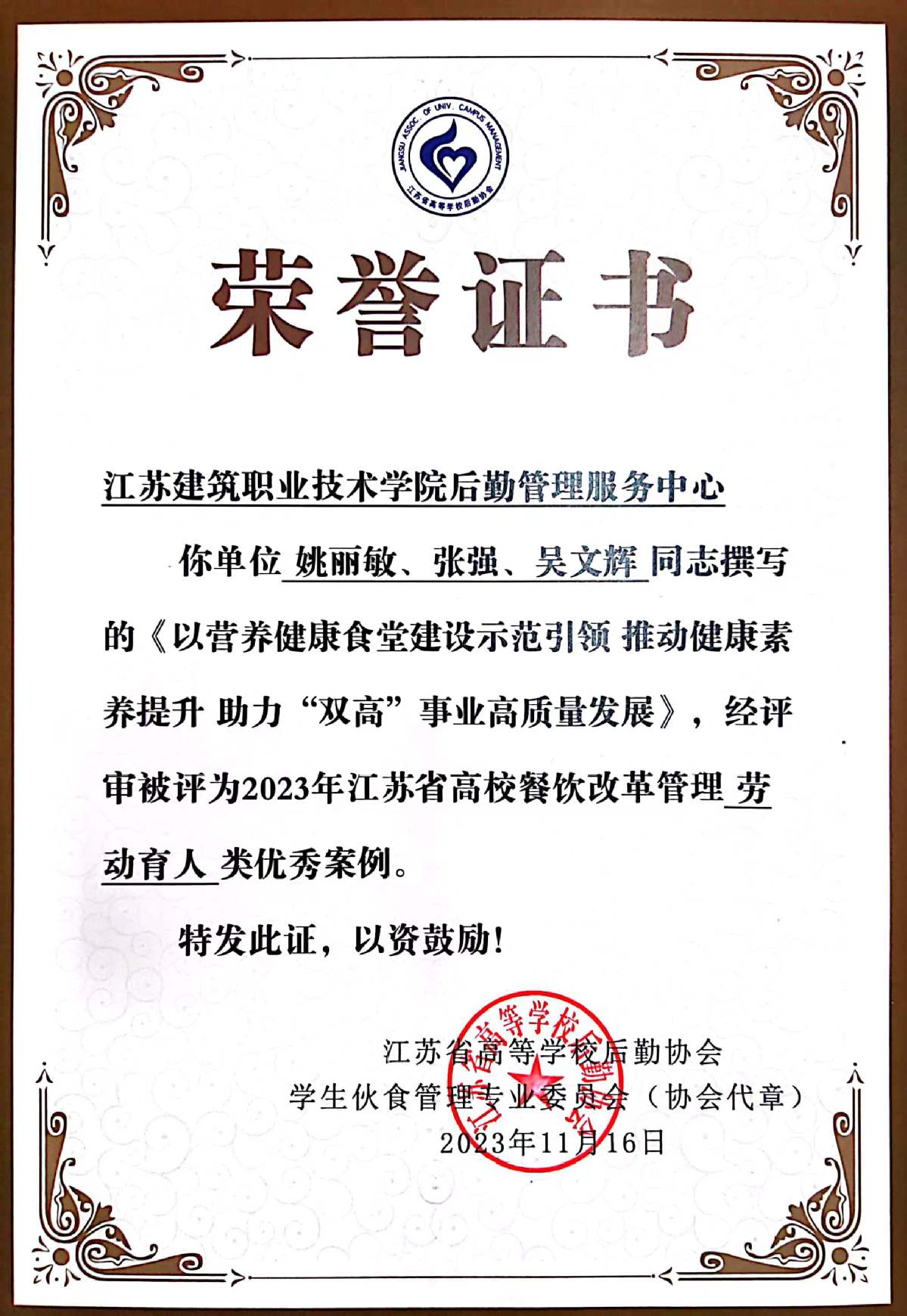 近日,江苏省高等学校后勤协会学生伙食管理专业委员会公布了“2023年江苏省高校餐饮改革管理优秀案例获奖名单”,MK(中国)后勤管理服务中心报送的案例《以营养健康食堂建设示范引领 推动健康素养提升 助力“双高”事业高质量发展》(作者:姚丽敏、张强、吴文辉)入选。