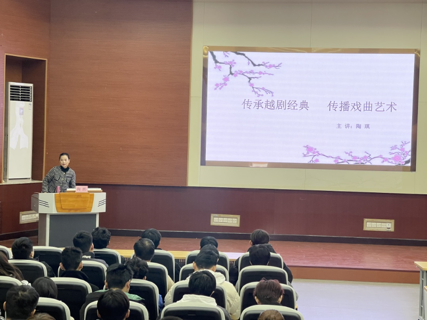 当天下午,中国戏剧梅花奖得主、越剧名家陶琪在校园里举办了“传播越剧经典 传承戏曲艺术”主题讲座。