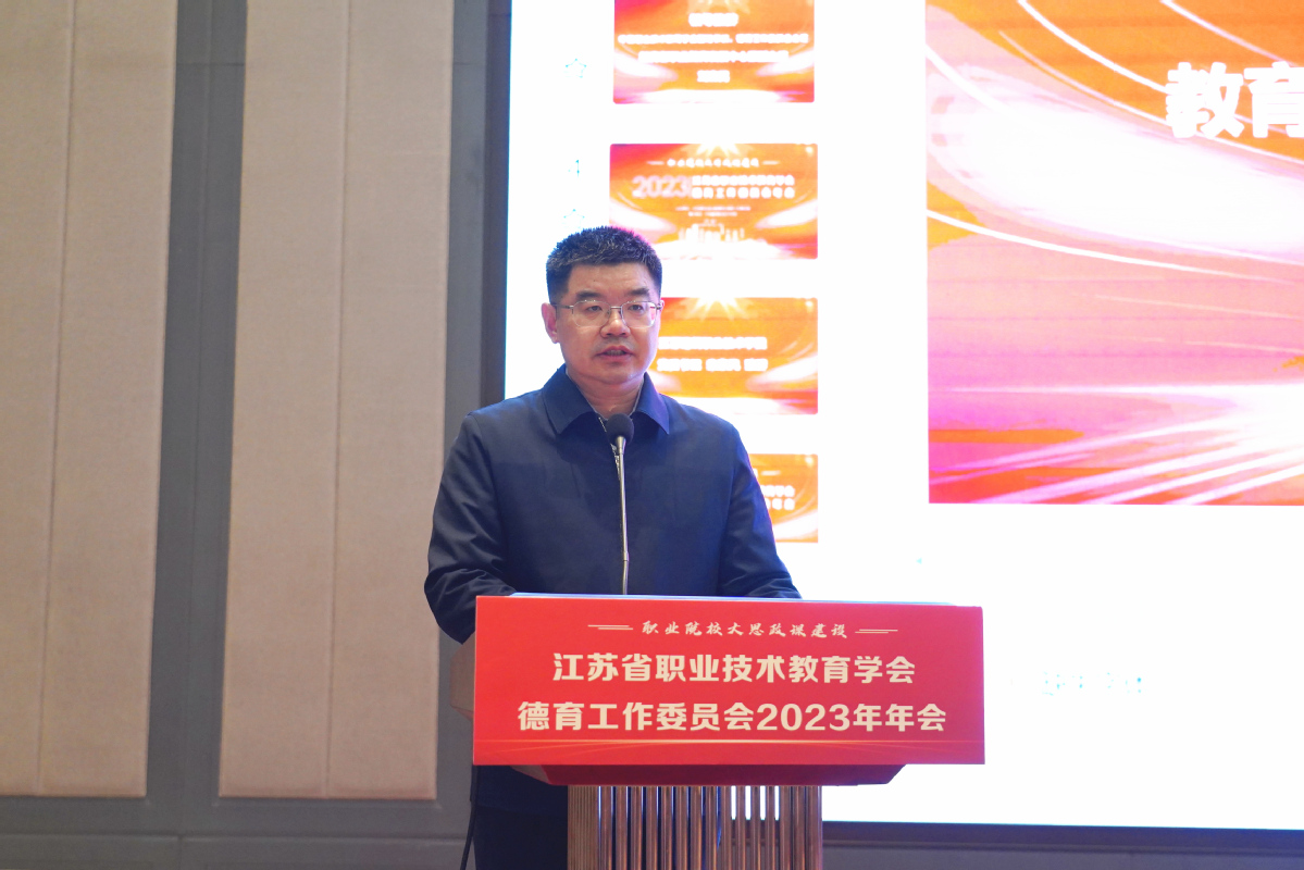 开幕式上,中国职业技术教育学会副秘书长、德育工作委员会主任、教育部职业教育发展中心原副主任刘宝民通过视频致辞。他指出,此次会议主题“职业院校‘大思政课’建设” 积极响应了习近平总书记强调的“‘大思政课’我们要善用之,思政课不仅应该在课堂上讲,也应该在社会生活中来讲”的要求。同时,他提出三点要求,一是提高政治站位,为建设教育强国贡献江苏职教力量;二是弘扬教育家精神,为职业院校学生健康成长贡献江苏经验;三是促进大思政课建设,为职业院校德育与思政工作贡献江苏智慧。
