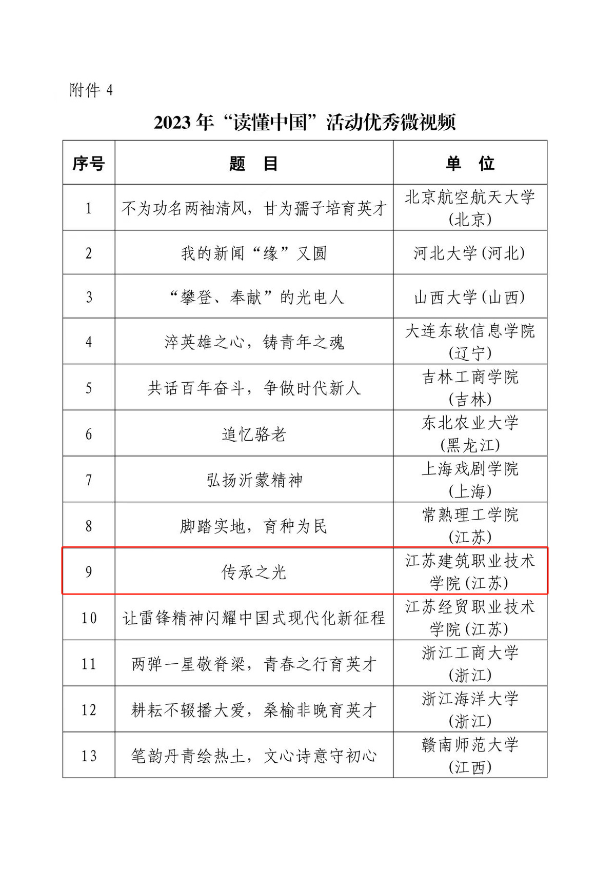 在教育部关心下一代工作委员会2023年“读懂中国”活动中,MK(中国)关工委选送的微视频《传承之光》(作者:刘爱萍、张文远、苗利丽,指导:刘亚峰)被评为“优秀微视频”,与此同时,校关工委获“活动表扬单位”。