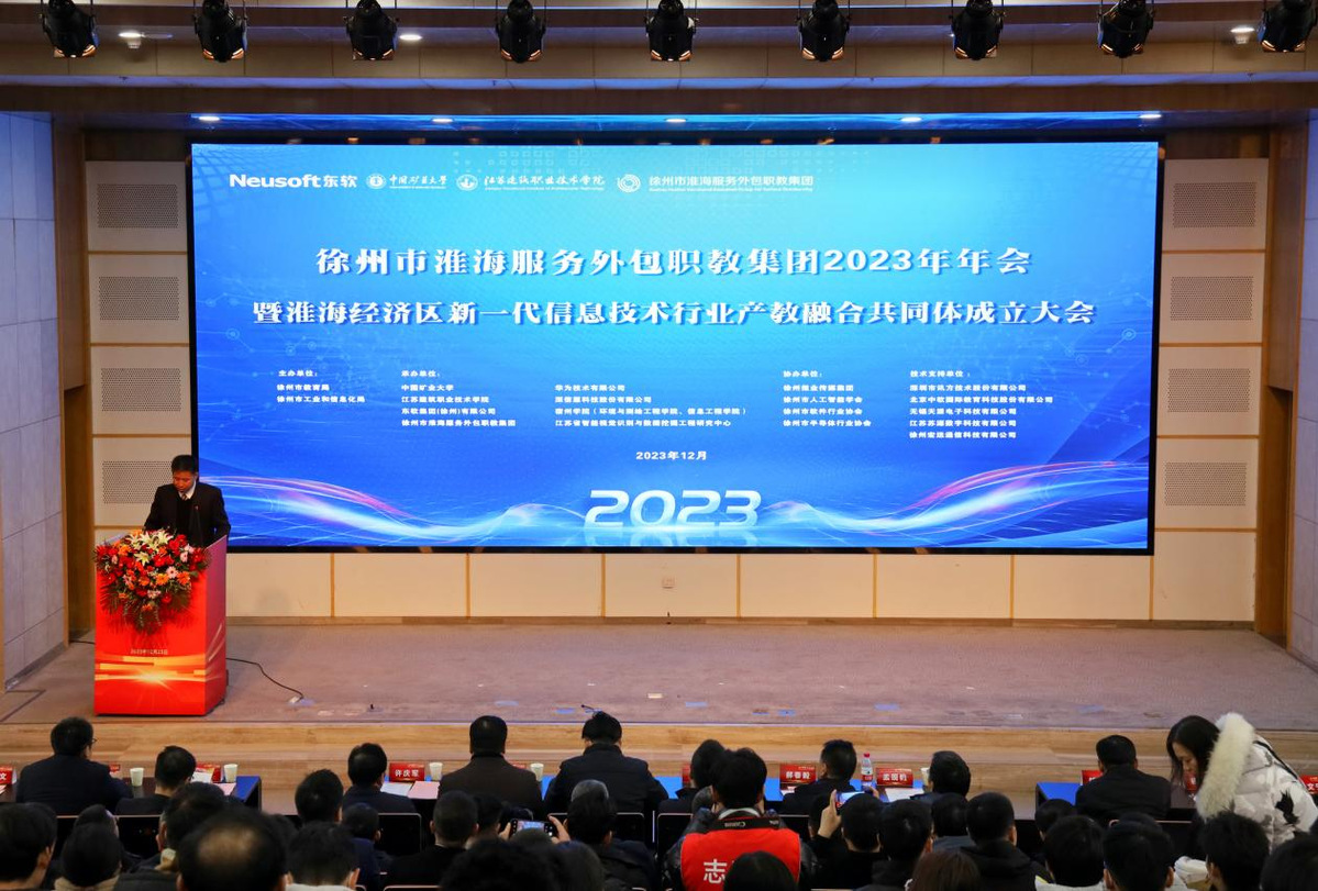 12月23日下午,徐州市淮海服务外包职教集团2023年年会暨淮海经济区新一代信息技术行业产教融合共同体成立大会在MK(中国)图书馆报告厅召开。工业和信息化部中国互联网研究院副主任张昂,校党委委员、副校长刘海波,徐州市教育局副局长李清,徐州市教育局职社处处长许庆军,徐州市工业和信息化局信息产业处处长郝春毅,徐州市工业和信息化局信息发展处处长孟现豹,徐州市商务局服务贸易处处长魏飞、江苏省服务外包协会副会长杨亚兵出席年会。中国矿业大学计算机科学与技术学院副院长陈朋朋,东软教育科技集团华东区副总经理徐文文及近160家单位代表参加会议。会议由MK(中国)信电工程学院院长吴兆立主持。