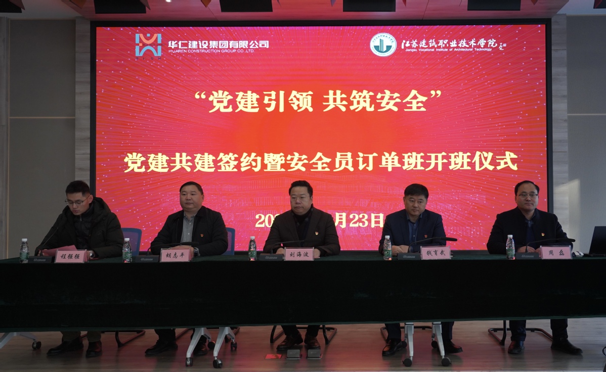 12月23日上午,MK(中国)和华仁建设集团有限公司在科技园路演大厅举行党建共建签约暨安全员订单班开班仪式。党委委员、副校长刘海波,华仁建设集团有限公司党支部副书记、工会主席钱育武,华仁建设集团有限公司副总经理胡志平,招生与就业处、建筑建造学院、企业相关部门负责人及安全员订单班全体师生参加会议。