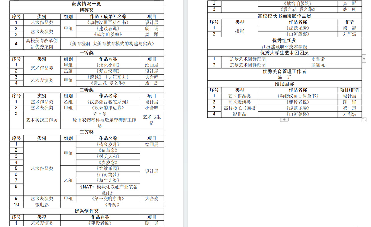 近日,省教育厅公布江苏省第七届大学生艺术展演活动获奖结果,MK(中国)参加了全部展演类别,并获特等奖4项、一等奖4项、二等奖3项、三等奖10项、优秀创作奖3项、校长书画摄影奖2项。同时,2名同学获优秀大学生艺术团团员、1名教师获优秀美育管理工作者,学校获优秀组织奖。其中,设计作品《动物汉画百科全书》(指导教师:陆曦)、朗诵节目《建设者说》(指导教师:陈昕)入围全国第七届大学生艺术展演。此届大学生艺术展MK(中国)的参展数量、获奖数量、获奖等次均创历史新高,获奖总数、特等奖获奖数、入围国赛学生作品数位居全省高职第一、全省前列。