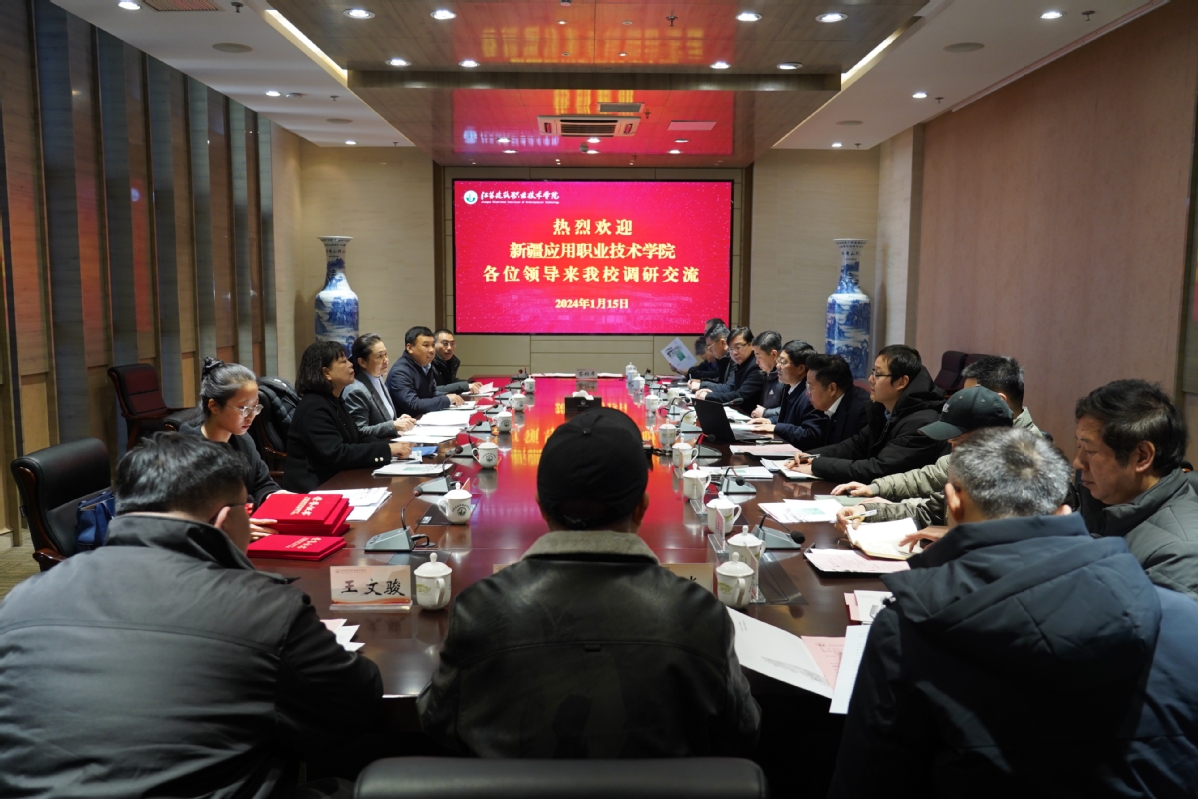 1月15日上午,新疆应用职业技术学院党委书记陈梅兰、副校长(援疆)刘庆新和科研处、石油与化学工程学院、党委办公室等部门有关同志一行5人来MK(中国)就职业教育高质量发展等工作开展调研,学校校长沈士德、副校长刘海波等出席调研活动,党政办公室、教务处、人事处、科技处、团委等相关部门负责人和部分援疆教师参加调研。