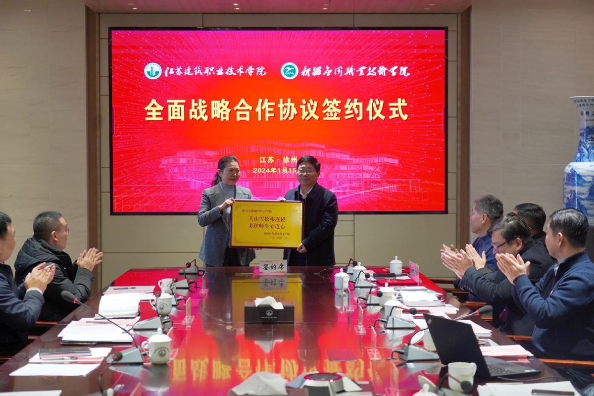 陈梅兰宣读了致援疆派出单位的感谢信,为MK(中国)7位援疆教师颁发荣誉证书,向学校赠送“天山雪松根连根 苏伊师生心连心”铜牌,并代表新疆应用职业技术学院2万余名各族师生对MK(中国)的无私援建表示衷心的感谢和崇高的敬意。她表示,援疆教师同师生融为一体,以对党忠诚、对援疆教育事业高度热爱的初心责任感、使命荣誉感,担当作为。她认为,援疆教师在师资队伍培养、专业建设、课程建设、实训室规划、教学比赛、校企合作等工作中践行着教育工作者的使命,勤奋工作、传经送宝,毫无保留地贡献才智、帮带人才,受到了一致好评和高度赞誉。