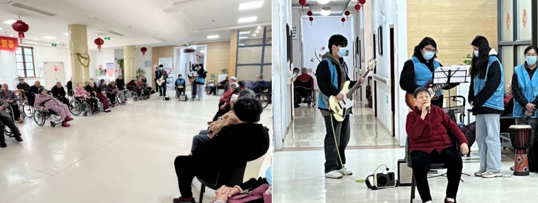 在志愿服务现场,志愿者们同老人们聊起国家发展近状与日常生活中的点点滴滴,他们感慨地说:“正是因为有了国家的各种福利和党的政策才能像今天这样无忧无虑地安享晚年生活。”老人们拉着志愿者们的手嘘寒问暖,言语中对年轻一代的殷切期望与关心。紧接着,志愿者们为老人们奉献了一场精心准备的演唱会,在志愿者的带动下,部分老人也积极踊跃上台演唱,现场氛围轻松愉快。