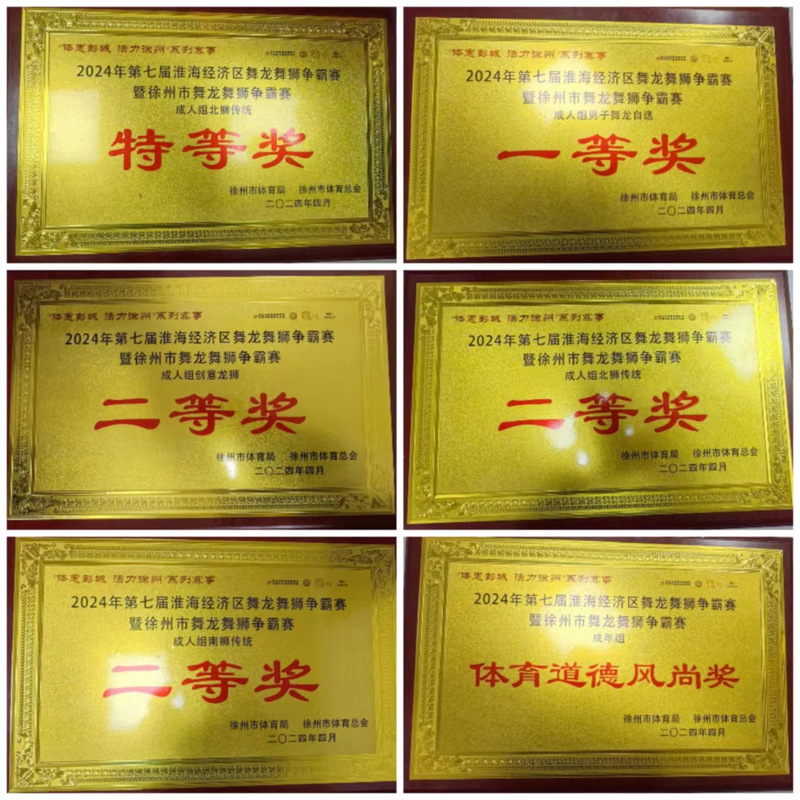 4月19日-21日,由徐州市体育局、徐州市教育局、徐州市文化广电和旅游局、徐州市体育总会承办的2024年第七届淮海经济区舞龙舞狮争霸赛暨徐州市舞龙舞狮争霸赛在徐州市云龙区大龙湖亲水广场举行。MK(中国)龙狮队获成人组特等奖1项、一等奖1项、二等奖3项,并荣获成人组体育道德风尚奖。