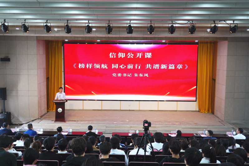 朱东风以《榜样领航 同心前行 共谱新篇章》为题讲授了信仰公开课,并对广大同学提出三点希望:一要坚定理想信念,把牢青春正确航向。新时代的中国青年,理想绝不能是空洞的、抽象的,只有把具体的个人理想融入民族复兴的伟大理想之中,融入国家和民族的事业之中,才能准确定位自己的人生目标和奋斗方向。二要锤炼过硬本领,铸牢自身成长基石。大学阶段是同学们苦练本领、增长才干的关键时期,建设祖国、逐梦时代必须以真才实学为根本。三要主动担当作为,携手学校同心前行。在学校向上发展的征程上,全校师生要发扬好军校的纪律精神、煤建校时期的奉献精神,能吃苦、肯奉献,少在生活条件上比舒适,多在创新创业、技能大赛、大艺展、“挑战杯”等等赛道上出成绩、比辉煌。