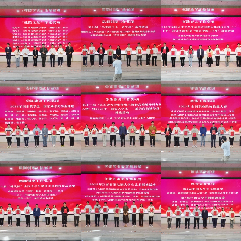 随后,梁惠宣读第十四届“建院之星”表彰决定,相关职能部门负责人分别宣读相关学生获奖名单。建筑装饰学院室设22-2班孙壮壮代表优秀学生发言。