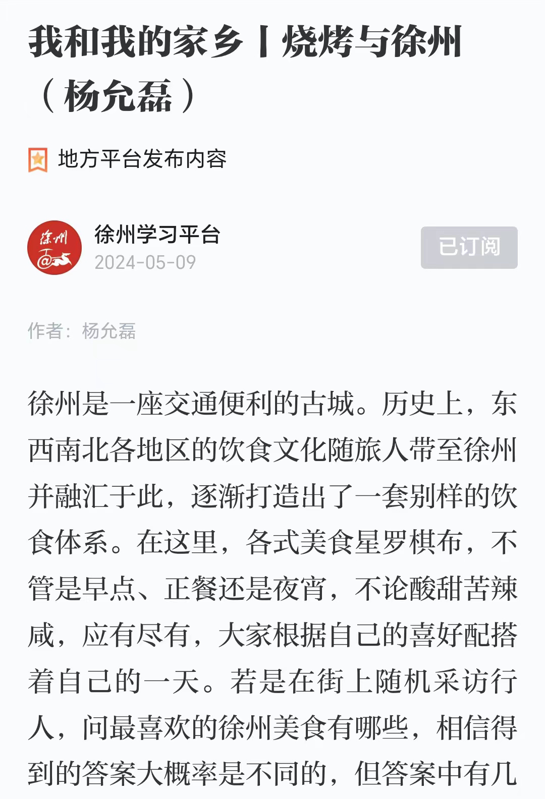 徐州是一座交通便利的古城。历史上,东西南北各地区的饮食文化随旅人带至徐州并融汇于此,逐渐打造出了一套别样的饮食体系。在这里,各式美食星罗棋布,不管是早点、正餐还是夜宵,不论酸甜苦辣咸,应有尽有,大家根据自己的喜好配搭着自己的一天。若是在街上随机采访行人,问最喜欢的徐州美食有哪些,相信得到的答案大概率是不同的,但答案中有几样美食的出镜率确实是极高的,比如徐州烧烤。