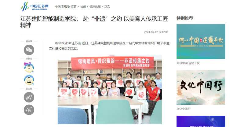 新华报业·新江苏讯 近日,江苏建院智能制造学院在一站式学生社区组织开展了非遗文化进校园系列活动。