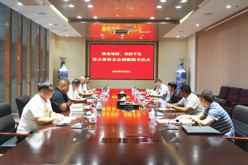 仪式上,梁惠、蒋兆峰代表学校接受捐赠并为校友会颁发捐赠牌匾和证书。连云港校友会会长万洪昌和杨来义、吴守洁、袁明、杨泗涛等连云港校友代表参加捐赠仪式,并亲自将一万册图书送至学校。