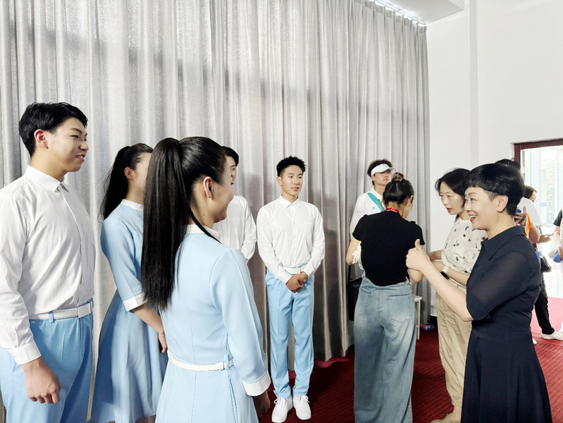 备战展演期间,校领导多次深入排练现场看望慰问参演师生,提供全方位的服务与保障。学校党委副书记梁惠亲赴演出现场,给学生加油鼓劲,希望参赛师生能持续发扬“不怕吃苦、敢于拼搏”的江苏建院精神,带着使命和责任在国赛的舞台上展现江苏建院学生的风貌。
