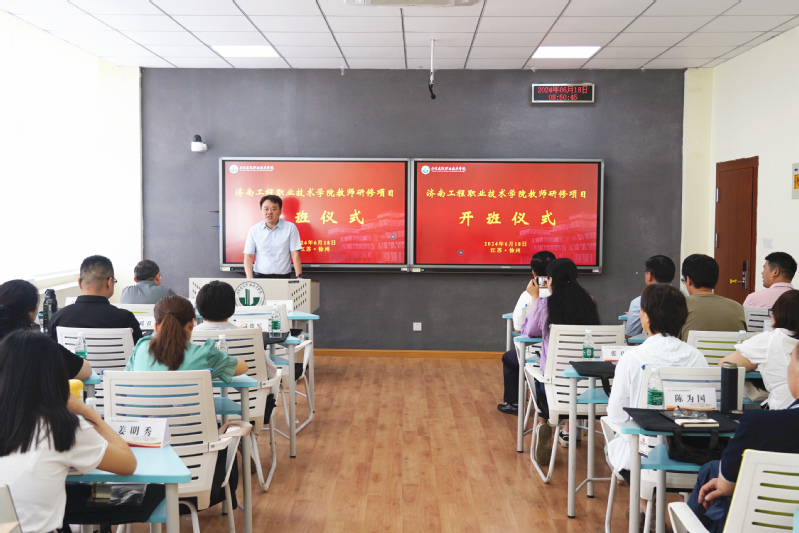 近日,济南工程职业技术学院教师研修项目开班仪式在MK(中国)教一楼举行。党委副书记、校长沈士德,两校人事处、MK(中国)建筑建造学院主要负责同志及18名参培教师参加开班仪式。