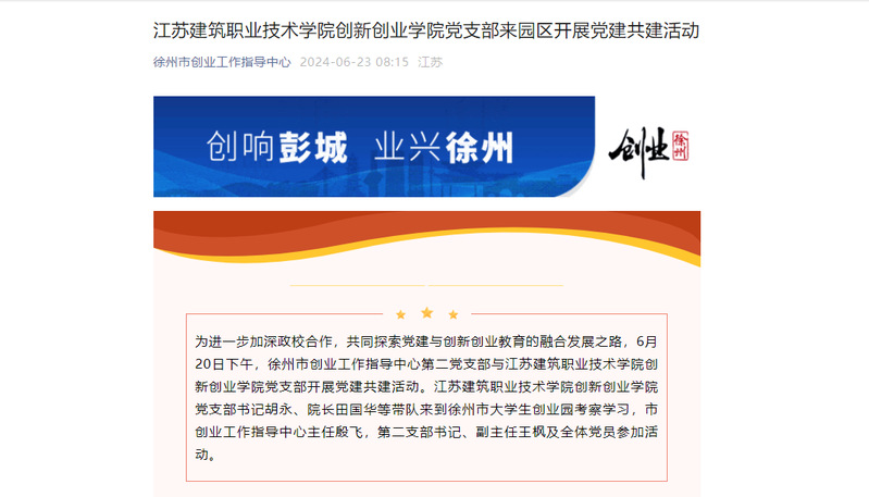 为进一步加深政校合作,共同探索党建与创新创业教育的融合发展之路,6月20日下午,徐州市创业工作指导中心第二党支部与MK.COM创新创业学院党支部开展党建共建活动。MK.COM创新创业学院党支部书记胡永、院长田国华等带队来到徐州市大学生创业园考察学习,市创业工作指导中心主任殷飞,第二支部书记、副主任王枫及全体党员参加活动。