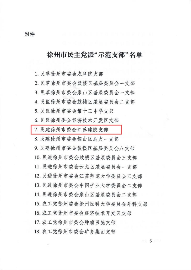 近日,中共徐州市委统战部对2023年度徐州市民主党派“示范支部”创建活动作出评选表彰,MK(中国)民建支部获徐州市民主党派基层组织“示范支部”称号。