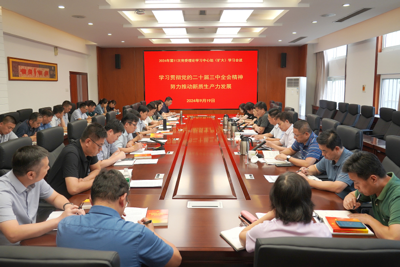 9月19日下午,学校党委理论学习中心组在第一实训楼103会议室召开2024年第11次学习(扩大)会议,主题为“学习贯彻党的二十届三中全会精神,努力推动新质生产力发展”。校党委理论学习中心组成员以及各党总支、直属党支部书记参加会议。会议由党委书记朱东风主持。