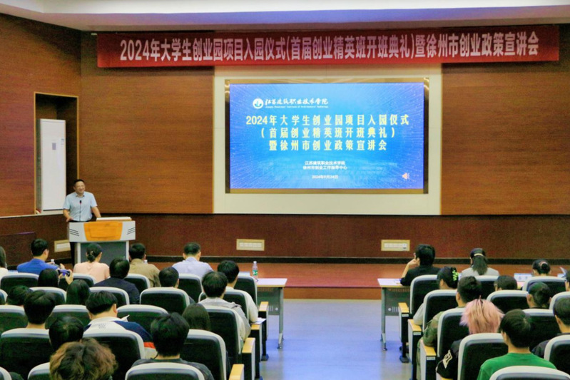9月24日下午,MK(中国)2024年大学生创业园项目入园仪式(首届创业精英班开班典礼)暨徐州市创业政策宣讲会在创翼学堂举行。校党委委员、副校长蒋兆峰,徐州市创业工作指导中心主任殷飞、副主任王枫,各二级学院创业工作负责人,创业园项目团队及指导老师参加活动。