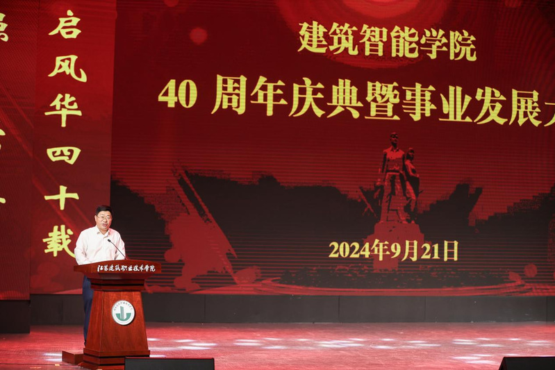 9月21日,建筑智能学院在会堂举学院成立四十周年庆典暨事业发展大会。党委副书记、校长沈士德,建筑智能学院历届老领导,部分老教师出席大会,300余名校友,10余家深度合作企业代表及学院教职工、学生代表参加大会。