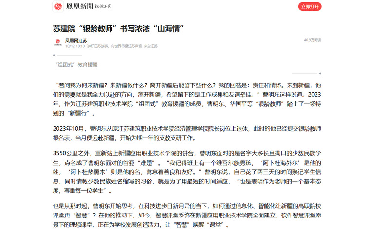 天山脚下,苏建院“银龄教师”唱响了新时代徐州援疆“大风歌”,书写出浓浓的“山海情”。
