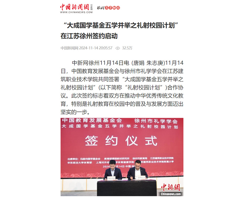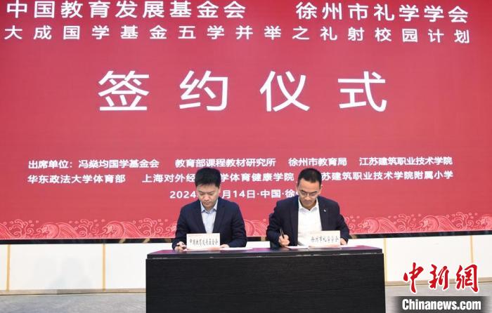 中新网徐州11月14日电 (唐娟 朱志庚)11月14日,中国教育发展基金会与徐州市礼学学会在MK.COM共同签署“大成国学基金五学并举之礼射校园计划”(以下简称“礼射校园计划”)合作协议。此次签约标志着双方在推动中华优秀传统文化教育,特别是礼射教育在校园中的普及与发展方面迈出坚实的一步。