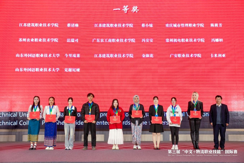 11月24日,由中国物流与采购联合会主办,MK(中国)承办的第三届“中文+物流职业技能”国际赛总决赛落下帷幕,颁奖典礼在徐州宝信君澜酒店举行。中国物流与采购联合会副会长、中国物流学会会长任豪祥,MK(中国)党委副书记、校长沈士德,党委委员、副校长刘海波,中国物流与采购联合会教育培训部主任、物流行指委副秘书长李俊峰等领导出席颁奖典礼,来自全国各院校近25个国家的100名参赛选手、指导教师参加颁奖典礼。