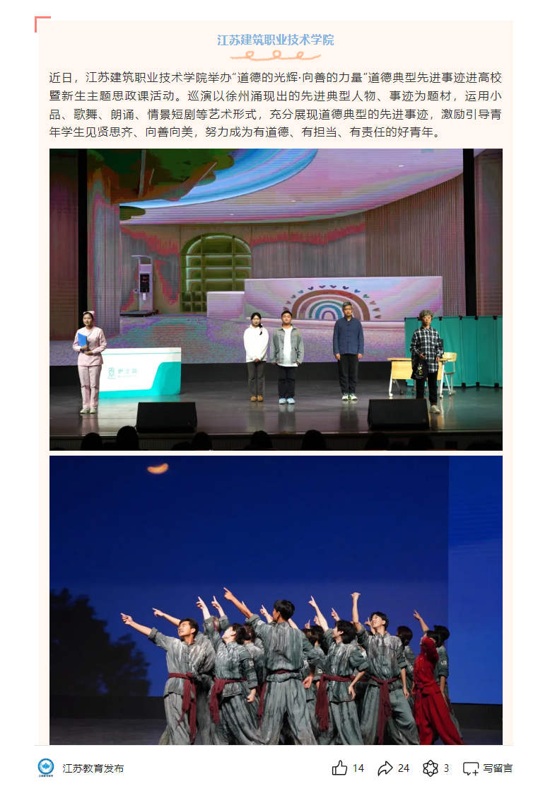 近日,MK.COM举办“道德的光辉·向善的力量”道德典型先进事迹进高校暨新生主题思政课活动。巡演以徐州涌现出的先进典型人物、事迹为题材,运用小品、歌舞、朗诵、情景短剧等艺术形式,充分展现道德典型的先进事迹,激励引导青年学生见贤思齐、向善向美,努力成为有道德、有担当、有责任的好青年。