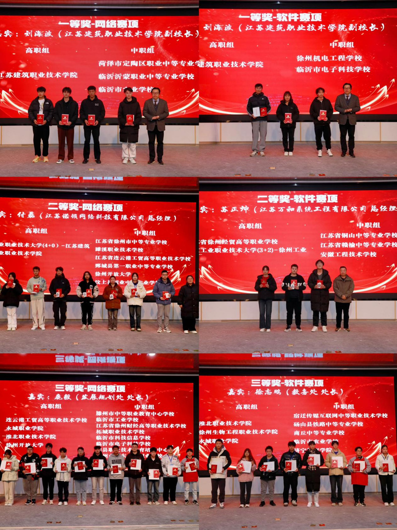 本次比赛设立网络和软件两个赛项,分高职组和中职组进行,共有来自淮海经济区4省10地市46所学校62支队伍参加比赛,186名师生同台竞技。经过角逐,最终决出网络赛项一等奖4名、二等奖8名、三等奖13名,软件赛项一等奖3名、二等奖5名、三等奖8名,优胜奖若干。