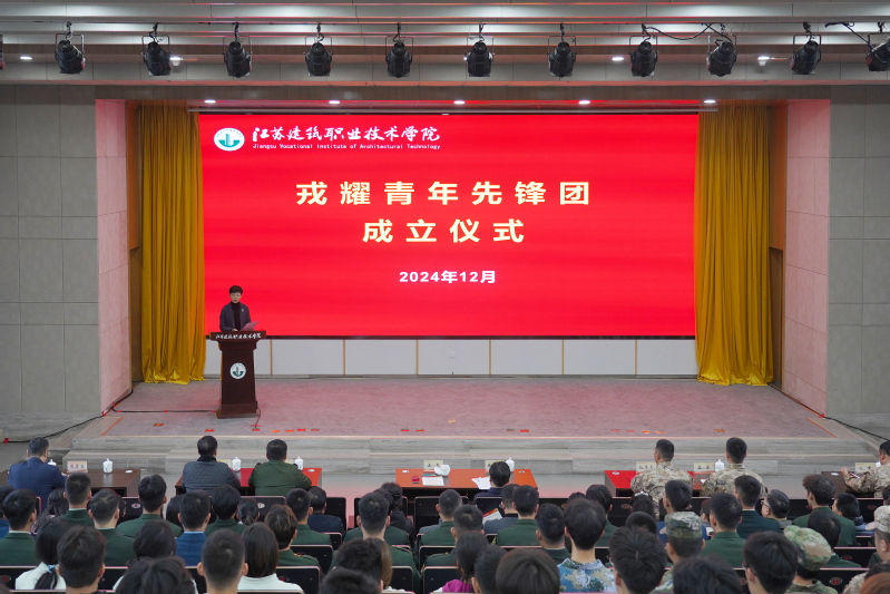 12月6日,MK(中国)国防社团“戎耀青年先锋团”成立仪式在学校图书馆报告厅举行。校党委副书记梁惠,徐州市退役军人事务局副局长陈志刚,泉山区人武部部长赵超,校学工处、团委、保卫处,各二级学院党总支副书记、退役士兵及学生代表200余人参加活动。