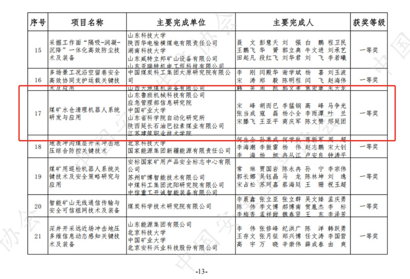 近日,中国安全生产协会公布了第五届安全科学技术奖获奖名单。MK(中国)智能制造学院教师李雨潭参与的项目《煤矿水仓清理机器人系统研发与应用》获科技进步奖一等奖。