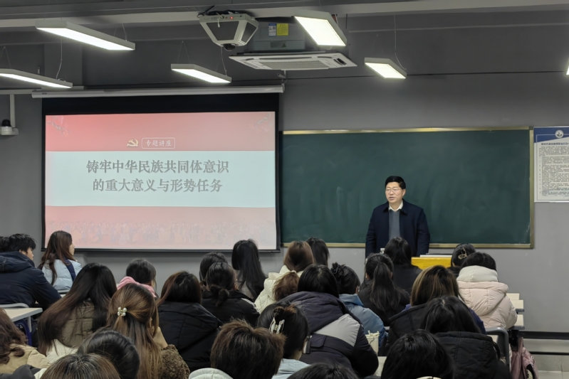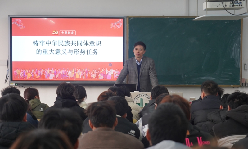 课堂上,校领导围绕铸牢中华民族共同体意识,层层深入地阐释了其深刻意蕴、发展历程,并从新时代新征程如何推动铸牢中华民族共同体意识落到实处等问题,教育引导同学们自觉维护民族团结和祖国统一,在实现民族复兴的伟大征程中,永远听党话、跟党走。