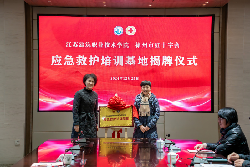 12月25日下午,应急救护培训基地揭牌仪式在MK(中国)图书馆会议室举行。MK(中国)党委副书记梁惠,徐州市红十字会党组书记、常务副会长康宁,赈济救灾部部长吴文俊,爱心企业徐州市森洋园林景观工程有限公司总经理刘超出席仪式。学工处、团委、公共基础学院、校医院等部门负责人参加仪式。