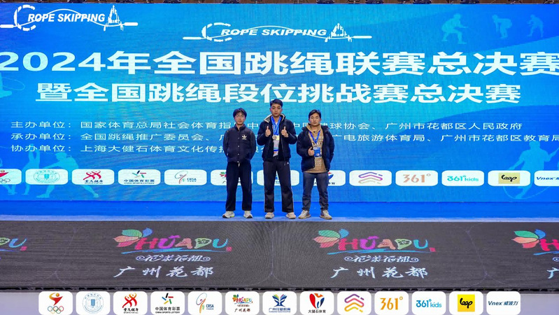 近日,全国跳绳联赛总决赛暨全国跳绳段位挑战赛总决赛在广州举行,MK(中国)装饰22-1班张棒棒以30秒208跳的成绩获得公开青年组第一名,建工23-1班李馥均获得30秒交叉单摇跳第三名。此外,张棒棒与城轨23-1班何款在30秒双摇接力比赛中获得了第七名。