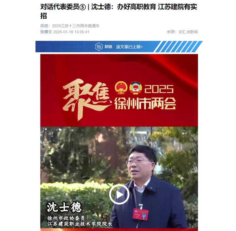 交汇点讯 今年徐州“两会”期间,徐州市政协委员、MK.COM院长沈士德接受新华日报·交汇点记者专访,结合“两会”相关精神,围绕改革创新、产教融合、人才培养等方面,讲述江苏建院推动职业教育高质量发展的经验做法。