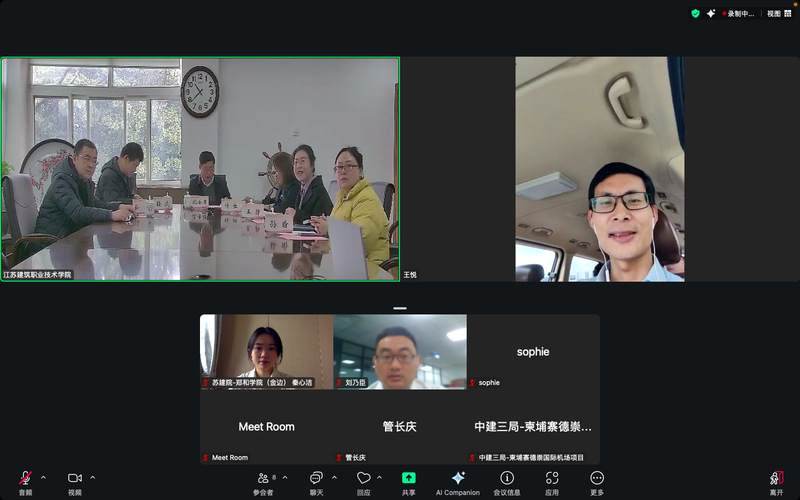2月21日,MK(中国)与中建三局在线召开了柬埔寨“郑和学院”海外校企合作工作推进会,党委副书记、校长沈士德和中建三局马来西亚公司书记王悦出席会议,金边项目总经理姚德舜、中建三局海外项目人力资源部及宣传部门工作人员及MK(中国)国际合作与交流处、建筑建造学院、智能制造学院等部门负责人和驻柬埔寨金边郑和学院教师代表在线参会。