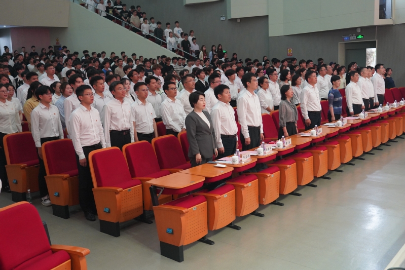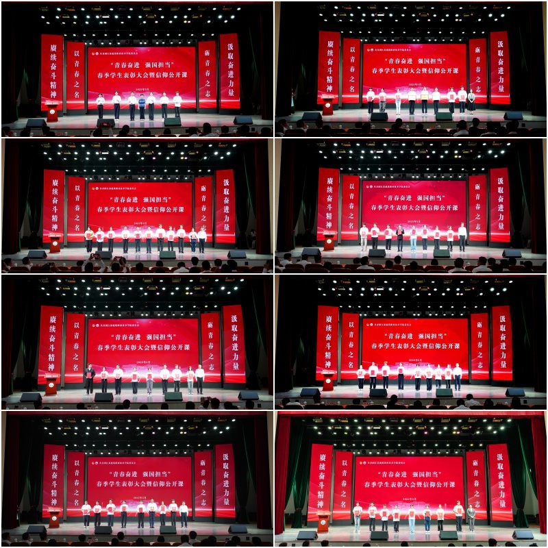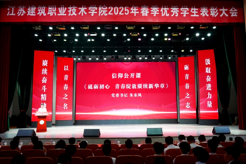 朱东风在讲话中向受到表彰的优秀集体和学生表示祝贺,充分肯定了过去一年团学工作成绩。随后,他以《砥砺初心 青春绽放赓续新华章》为题,讲授了信仰公开课。他强调,2025年是学校“十四五”规划收官之年、“十五五”发展谋篇之年,也是职业本科创建冲刺之年。全体青年学生要以“时不我待”的紧迫感练就过硬本领,以“舍我其谁”的责任感勇挑时代重担。他对全校各级团学组织、共青团干部提出三点要求:一是要铸魂育人,夯实思想基础;二是要实干笃行,强化使命担当;三是要服务大局,突出能力建设。同时,他对全体学生提出三点期望:要坚定信念,做“五四精神”的传承者;要勇立潮头,做“创新创造”的引领者;要身体力行,做“升本冲双”的践行者。