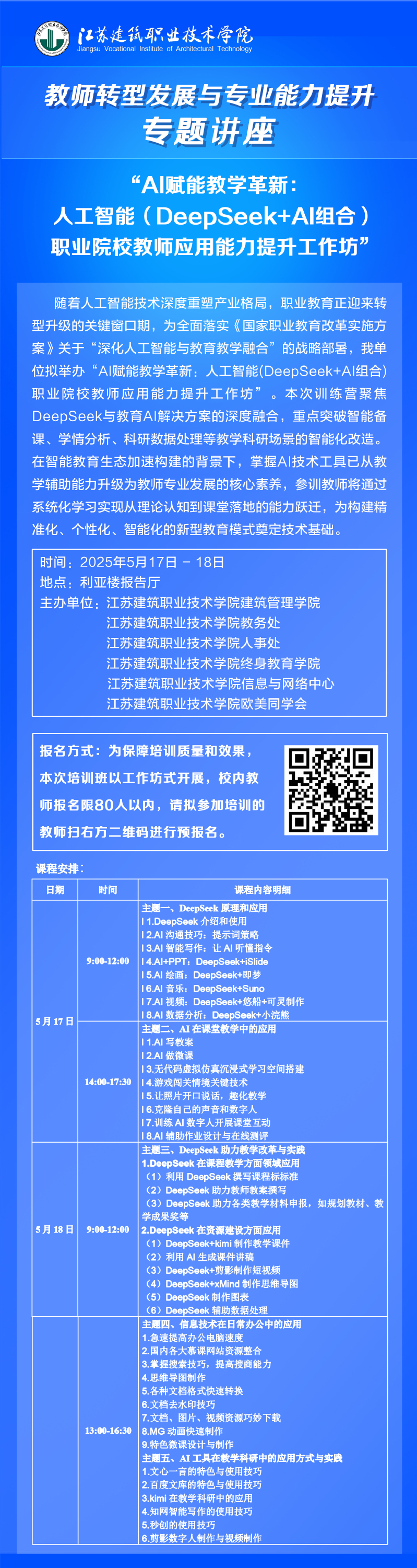 【专题讲座】AI赋能教学革新:人工智能(DeepSeek+AI组合)职业院校教师应用能力提升工作坊