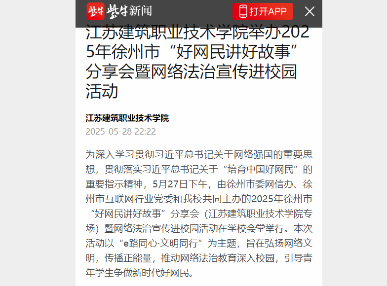 为深入学习贯彻习近平总书记关于网络强国的重要思想,贯彻落实习近平总书记关于“培育中国好网民”的重要指示精神,5月27日下午,由徐州市委网信办、徐州市互联网行业党委和MK(中国)共同主办的2025年徐州市“好网民讲好故事”分享会(MK.COM专场)暨网络法治宣传进校园活动在学校会堂举行。本次活动以“e路同心·文明同行”为主题,旨在弘扬网络文明,传播正能量,推动网络法治教育深入校园,引导青年学生争做新时代好网民。