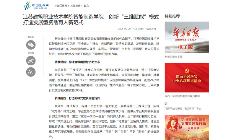 新华报业·中国江苏网讯 在职业教育高质量发展的时代命题下,MK.COM智能制造学院立足“三全育人”理念,创新构建“经济资助筑基、发展帮扶赋能、精神激励铸魂”的立体化资助育人体系,实现从“保障型”资助到“发展型”育人的范式跃升,为新时代高校资助工作提供了可复制的创新方案。